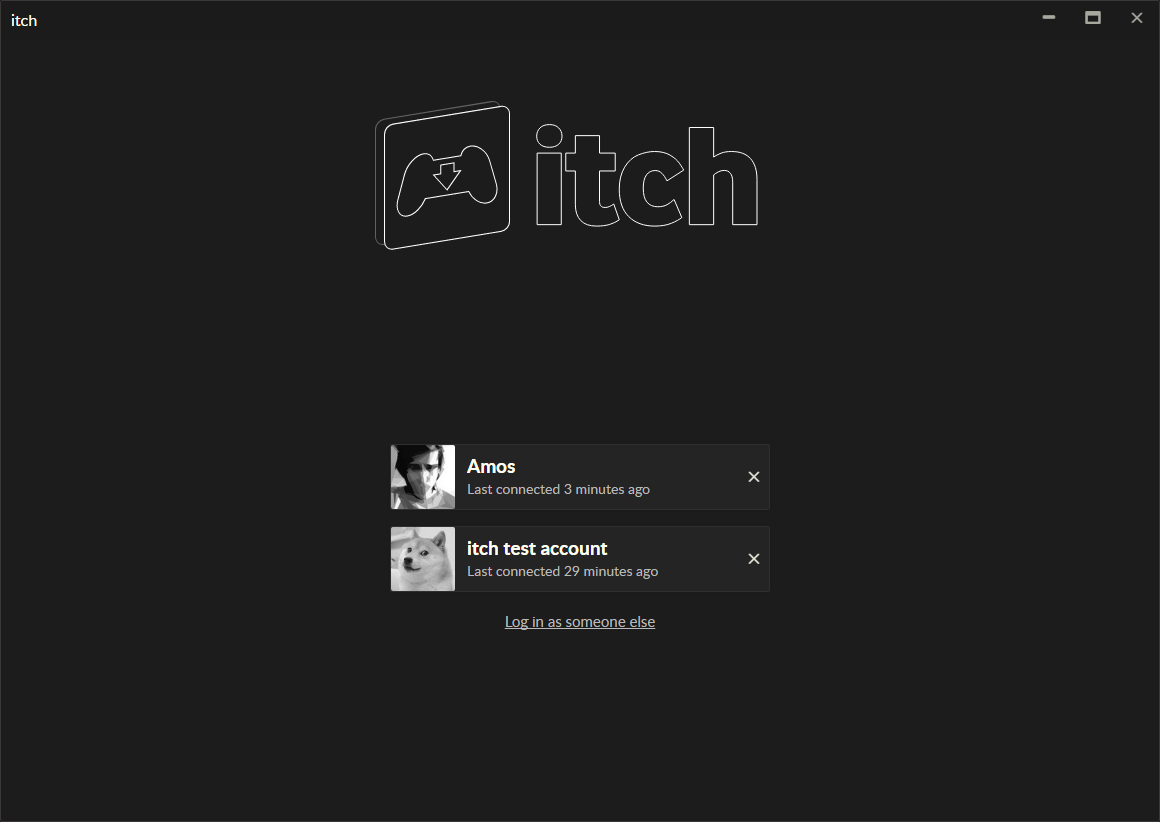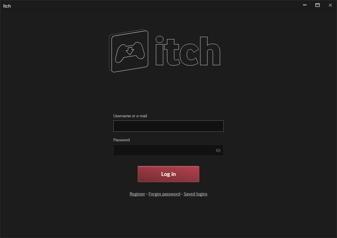 The first time the app starts, it will ask you for your itch.io username (or e-mail) and password.